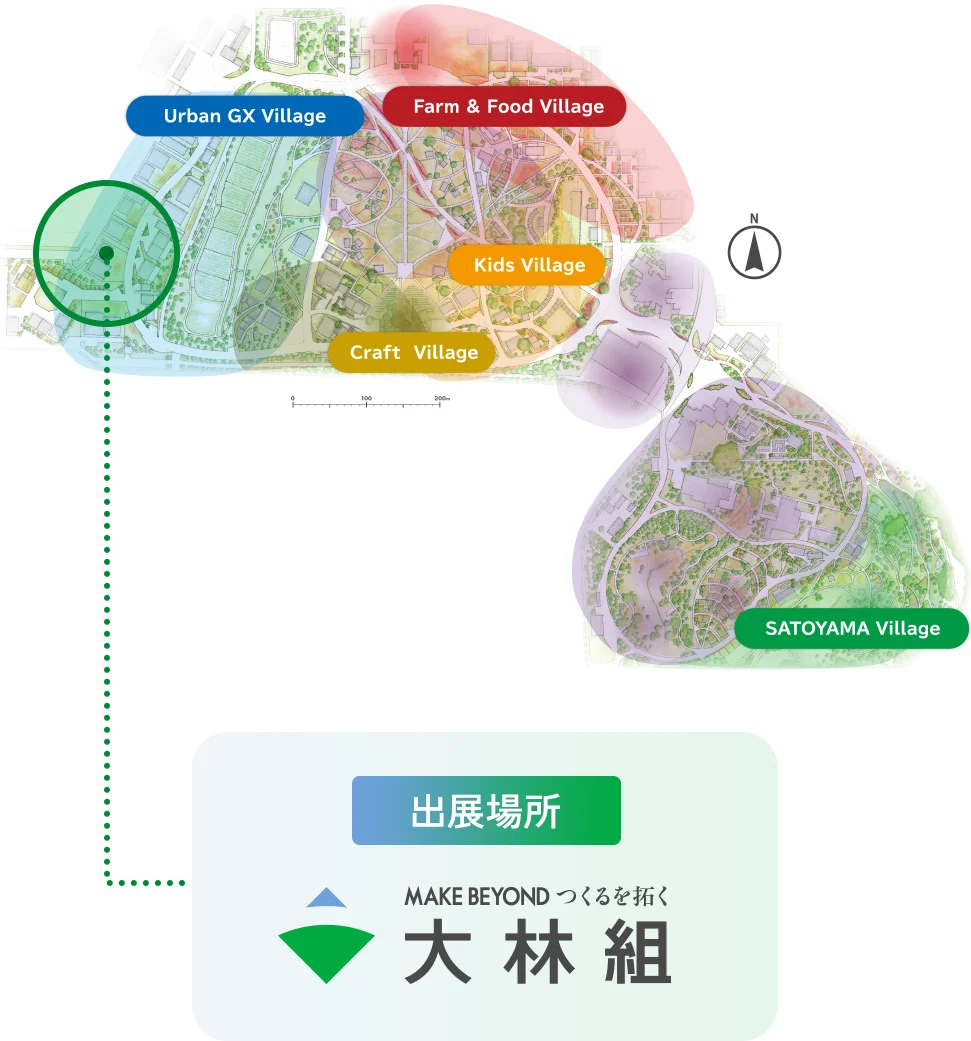 大林組が出展するUrban GX Villageでは、未来への期待感を感じることができる展示・体験プログラムを提供し、大林グループが見据える「サステナブルな未来社会」とブランドビジョン「つくるを拓く」への思いを広く発信していきます。